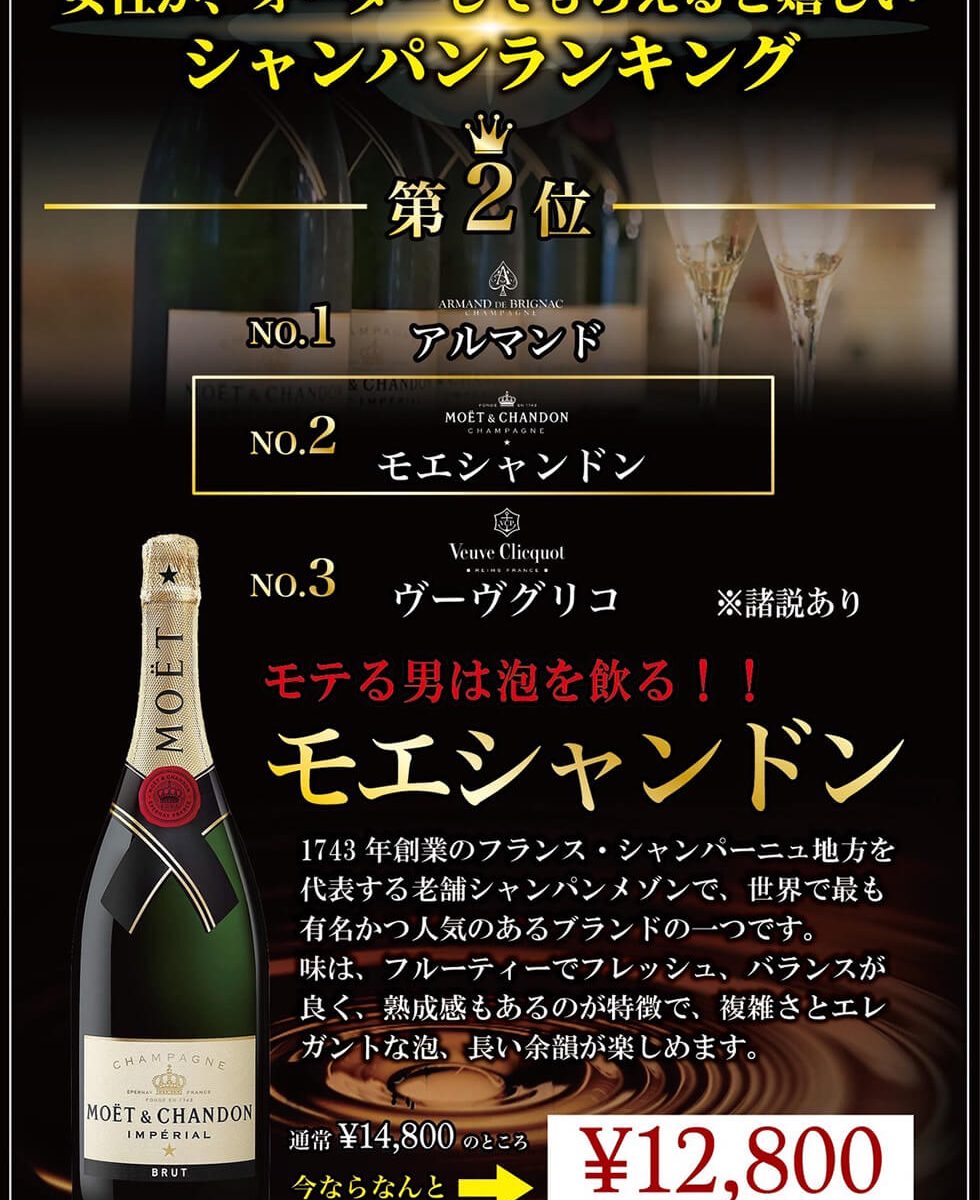 あの高級シャンパン、モエシャンドン14800円が、今ならなんと12800円でご提示!